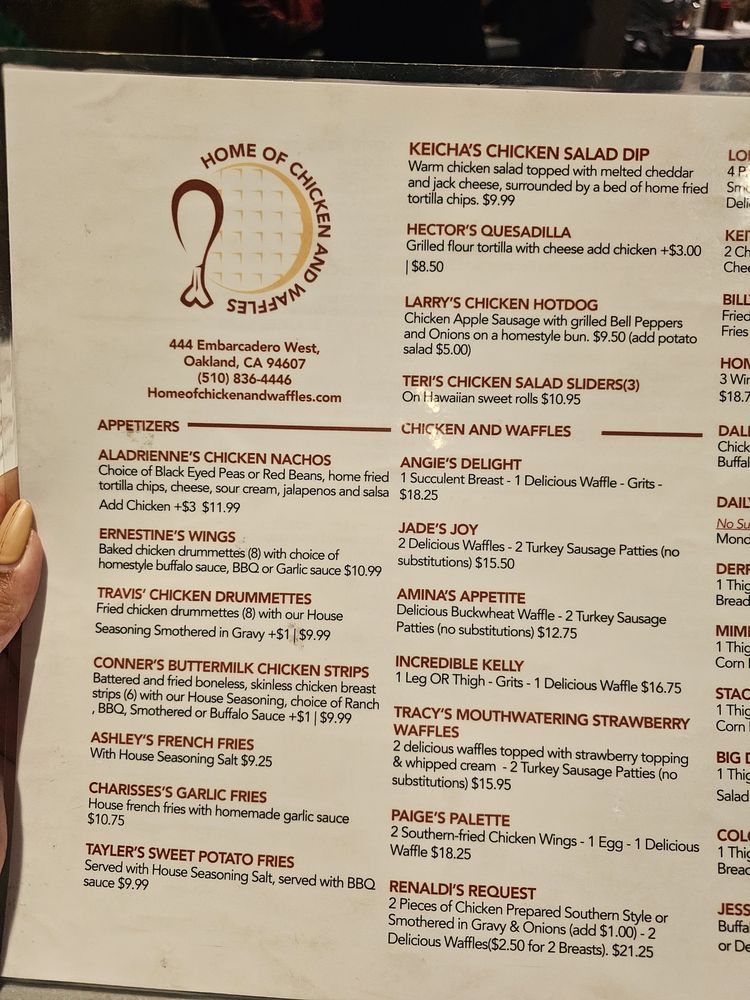 Welcome to the "Home of Chicken and Waffles," a vibrant bar located at 247 4th St, Oakland, CA. This family-owned gem offers a delightful menu featuring Southern comfort food staples, primarily renowned for its crispy fried chicken paired with fluffy waffles. The ambiance resonates warmth, welcoming families, friends, and brunch enthusiasts alike.